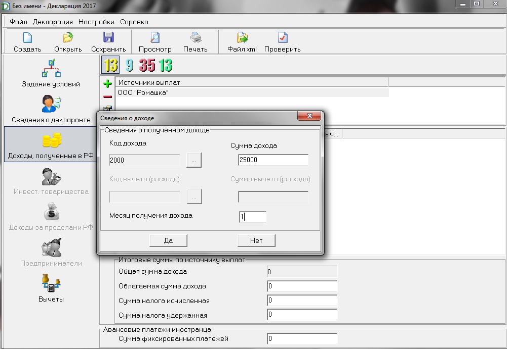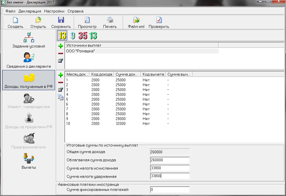 Наша декларация готова. Теперь ее можно проверить на корректность заполнения и распечатать в двух экземплярах.