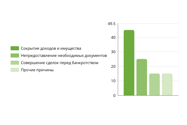 Как видно из диаграммы, почти половина отказов связана с сокрытием информации. Юрист поможет вам правильно подготовить все декларации и избежать роковых ошибок.